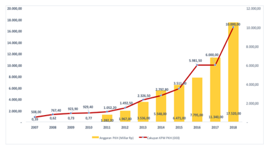 Diawali dengan hanya 500.000 rumah tangga sangat miskin di 7 provinsi (Sumatra, Jakarta, Jawa Barat, Jawa Timur, Gorontalo, Sulawesi Utara, dan Nusa Tenggara Timur), PKH telah mencakup sekitar 10 juta rumah tangga miskin di seluruh Indonesia pada tahun 2018. Anggaran PKH juga kerap meningkat dari tahun ke tahun. Dimulai dari Rp843 miliar pada tahun 2007, hingga melebihi Rp17 triliun pada tahun 2018.